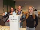 Auch wenn gelegentlich Wahlbenachrichtigungen oder Ausweise vergessen wurden, oder – wie bei den richtigen Wahlen – sich Warteschlangen vor den Wahlkabinen bildeten, waren Wahlvorstand, Wahlhelfer und die teilnehmenden Schüler mit viel Engagement bei der Sache. Das übergeordnete Ziel, der allgemeinen „Politikmüdigkeit“ bei Jugendlichen entgegenzuwirken, scheint angesichts der Wahlbeteiligung von 77,2% - trotz Grippewelle - erreicht worden zu sein.