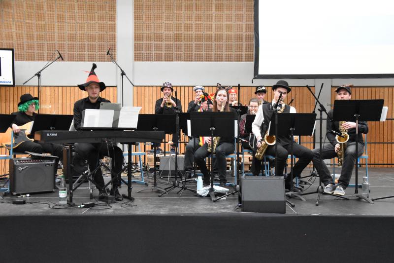 Traditionell hat die Jahrgangsstufe 13 mit einer närrischen Polonaise begonnen, bei der sie mit viel Musik ihre Mitschüler aus dem Unterricht abgeholt und sie sicher in die festliche Turnhalle geleitet haben. Zuerst konnten sich die Stufen 5 bis 8 und danach die Stufen 9 bis 13 die vielfältigen Beiträge anschauen: Von Live-Musik der GYMNO-Bigband, bestehend aus Lehrern und Schülern, über Gesangsbeiträge der Schüler, Tanzeinlagen mit eigens erarbeiteten Choreografien und dem Männerballett der Jahrgangsstufe 12 gab es viel zu bestaunen und zu bejubeln. Auch für das leibliche Wohl wurde gesorgt. Die Stufe 12 hat Groß und Klein mit selbstgebackenen Leckereien, Kreppeln und Waffeln versorgt.