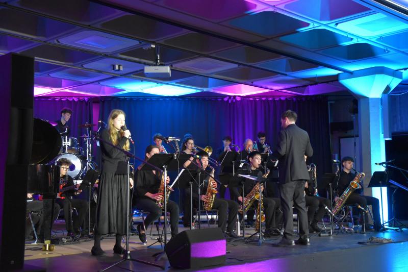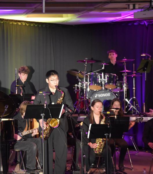 Am Freitag, dem 6. März, erfüllten die Bigband und die Nachwuchsband das Foyer der Schule mit mit einer bunten Mischung aus Pop-, Rock-, Funk-, Swing- und Latin-Titeln und begeisterten ihr Publikum mit ihrem gut zweistündigen Programm.