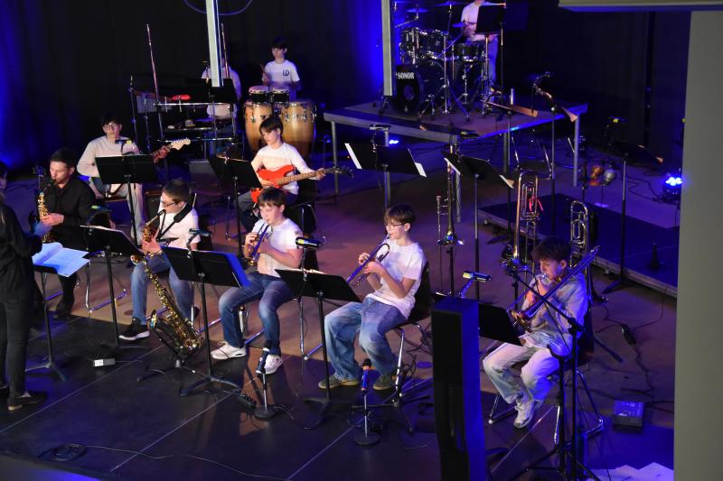 In der Mitte des Abends machten die „Großen“ die Bühne frei für die Nachwuchsband unter der Leitung von Lea Blumberg. Mit Klassikern wie Gimme Some Lovin' oder Seven Nation Army heizten sie dem Publikum ordentlich ein und machten deutlich, dass man sich um die Zukunft der Bigband keine Sorgen machen muss.