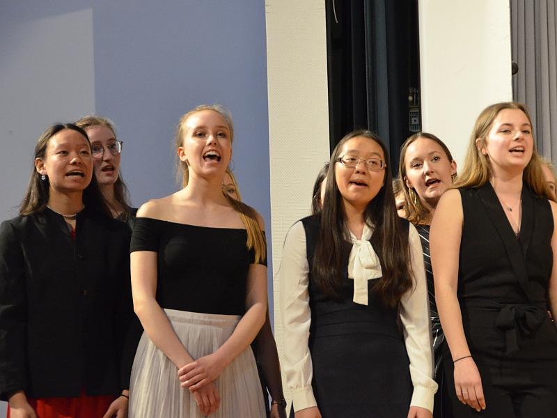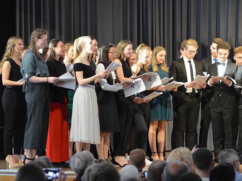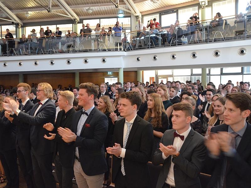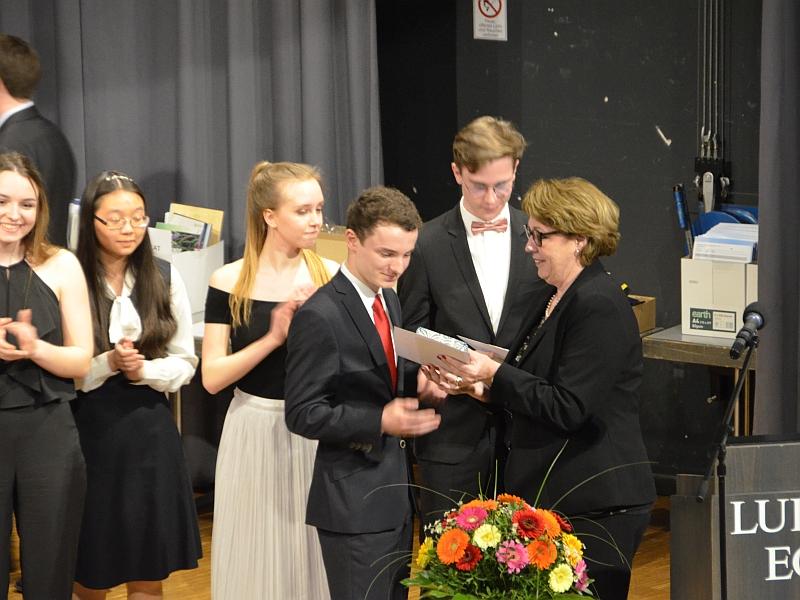 Zahlreiche Schülerinnen und Schüler erhielten wegen herausragender schulischer Leistungen und ihres Engagements innerhalb der Schule Preise und Auszeichnungen, bevor dann schließlich die Abiturzeignisse von der Schulleiterin und den Stamkursleiteren ausgegeben wurden.