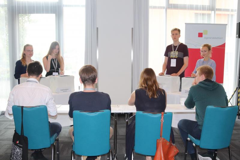 Am nächsten Tag, dem Turniertag, debattierte ich im Contra-Team mit Ben Flodmann aus Bremen zum Thema: "Sollen die Anwendungsgebiete und der Einsatz von Roboter in der Pflege erweitert werden?"