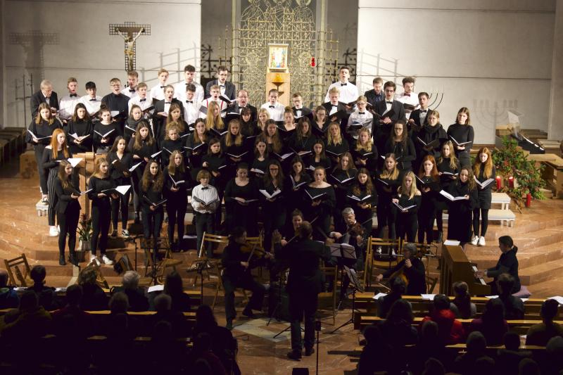 Über 200 Schülerinnen und Schüler, Lehrerinnen und Lehrer sowie einige Ehemalige zogen vor dem dritten Advent in der vollbesetzten St. Bonifaziuskirche der Mainzer Neustadt an zwei Abenden die Zuhörer in ihren Bann.