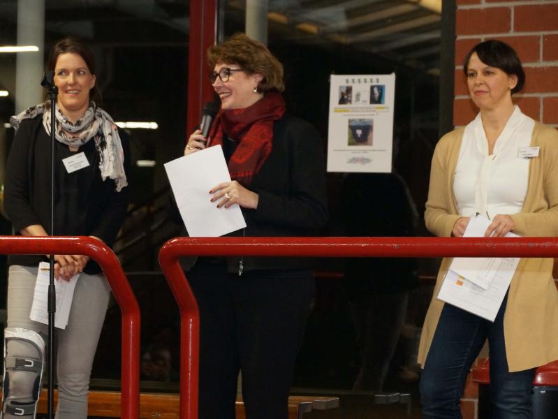 „Das Haus brummt“, freute sich Schulleiterin Christel Frey angesichts der rund 140 Jugendlichen, die am Abend ihre Schule besuchten. Zwei von 21 Workshops aus den unterschiedlichsten Berufsgruppen konnten sie auswählen, um sich ein Bild von ihrem möglichen späteren Beruf zu machen. Die Berufe werden jedes Jahr von den Schülern ausgewählt“, sagte SEB-Vorsitzende Anja Noky, „wir versuchen, möglichst alle Wünsche zu erfüllen und freuen uns daher immer sehr über neue Referenten.“