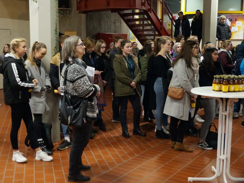 Seit 2011 laden der Schultelternbeirat (SEB) zusammen mit dem GYMNO-Berufsorientierungsstab und dem Bildungspartner Granini Schülerinnen und Schüler der Jahrgangsstufen 10 bis 12 dazu ein. Das Interesse war auch in diesem Jahr wieder groß.