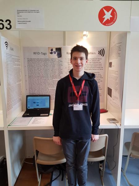 Silas Kerz (Kl. 10f) hat sich in seiner Arbeit „Sicherheitslücken in Computern und Netzwerken und mögliche Lösungen“ mit verschiedenen Hackerangriffen auf Computer und Rechnernetze beschäftigt. Er zeigt, wie leicht es ist, RFID-Tags, Heimnetzwerke und deren WLAN und Computer im Allgemeinen zu manipulieren. Aber gleichzeitig liefert er mögliche Strategien zum Schutz vor Hackerangriffen. Mit seiner Arbeit hat er den 3. Platz im Fachgebiet Mathematik/Informatik belegt und zusätzlich den Sonderpreis „Thinking safety“ erhalten.
