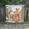Johanna Neff ließ sich vom berühmten Abbey Road Plattencover der Beatles inspirieren und gestaltete zusammen mit Talesia Grippaldi den Stromkasten an der Karl-Sieben-Straße / Lindenstraße. Mila Cifelli bereicherte den Stromkasten am Maler-Metten-Weg mit einem Durchblick auf einen Sonnenaufgang, sie wurde unterstützt von Alina Overhaus. „My Body my Choice“ ist ein Graffiti-Schriftzug, den die Schülerinnen Emilia Kipping, Dana Heer, Maria Souza, Nelly Bai, Charlotte Stahmann und Amy Hotz in Regenbogen-Optik auf den Kasten in der Karl-Sieben-Straße aufgemalt haben. Gegenüber des Haupteingangs des Gymnasiums gestaltete die Abiturientin Anuschka Beneke den Stromkasten mit einem Motiv, das in der aktuellen Corona-Situation Hoffnung macht. Igel und Fuchs halten ein Schild mit der Aufschrift „Hope“ hoch, während die uns allseits begleitenden OP-Masken auf dem Boden liegen.