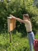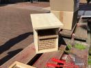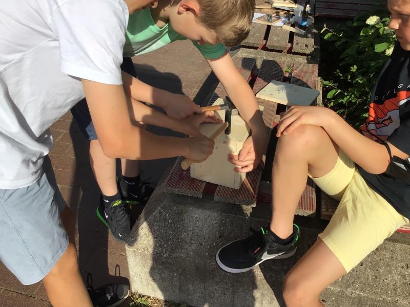 „Höchste Zeit noch mehr zu tun!“, dachten wir uns und starteten gleich mehrere Aktionen, um das Schulgelände noch bienenfreundlicher zu gestalten und die Öffentlichkeit zu informieren: das Anlegen eines Hochbeetes mit einer Mischung heimischer Blütenpflanzen als Nahrungsquelle für Wildbienen, den Bau einer Nisthilfe sowie einer Bienentränke, das Verteilen von Aktionspostkarten für Blühstreifen, das Herstellen von Saatpapier zum Verteilen und die Gestaltung einer Ausstellung.
