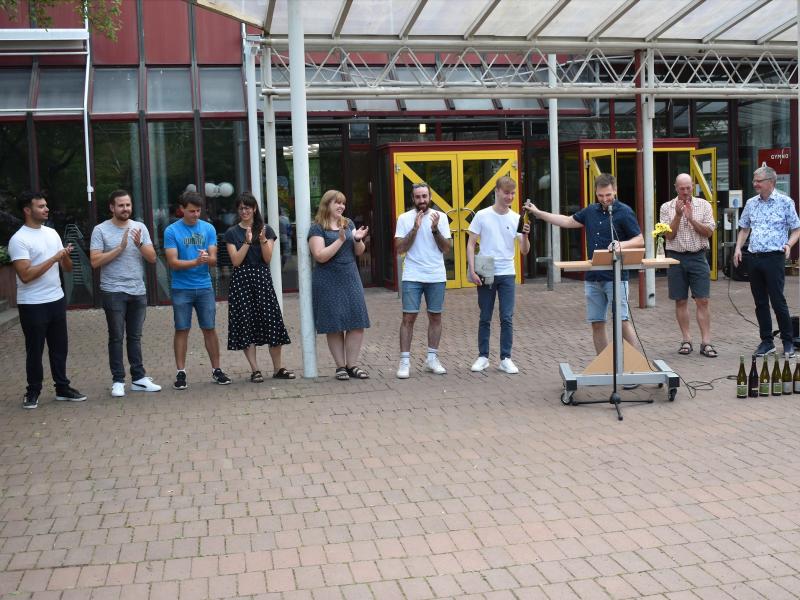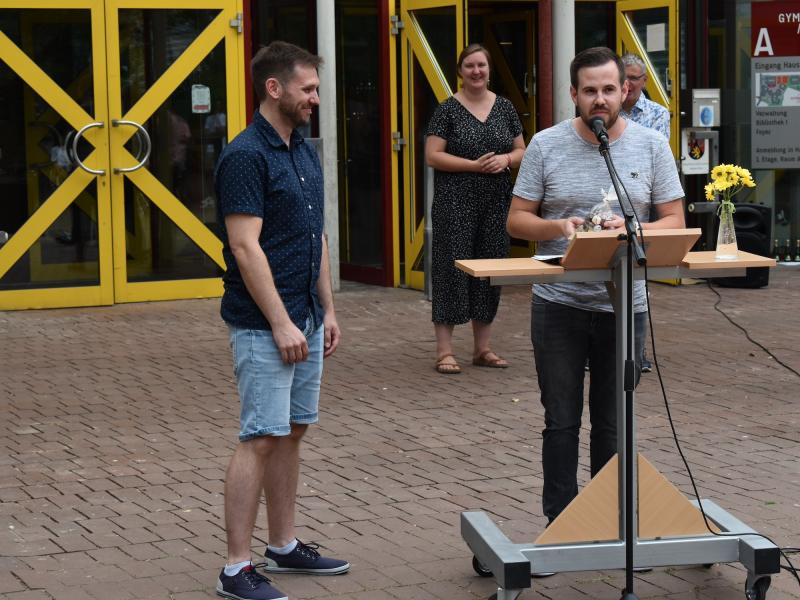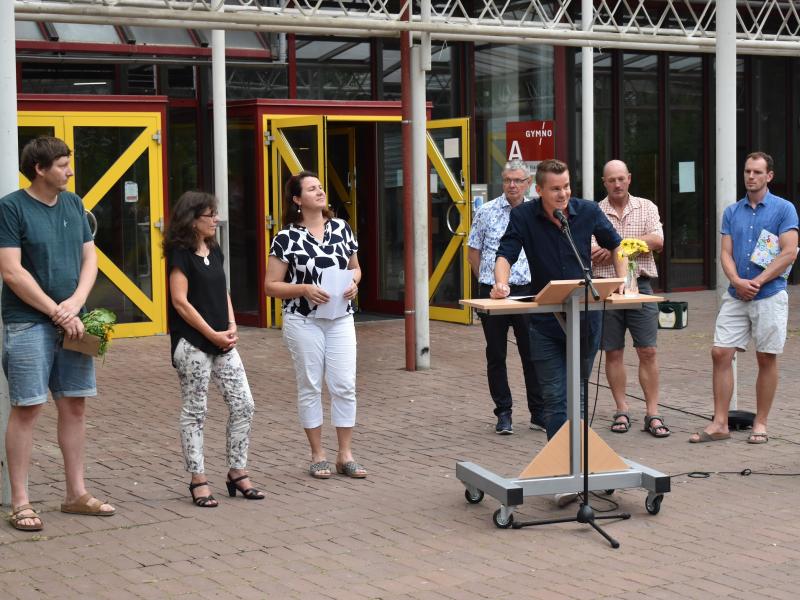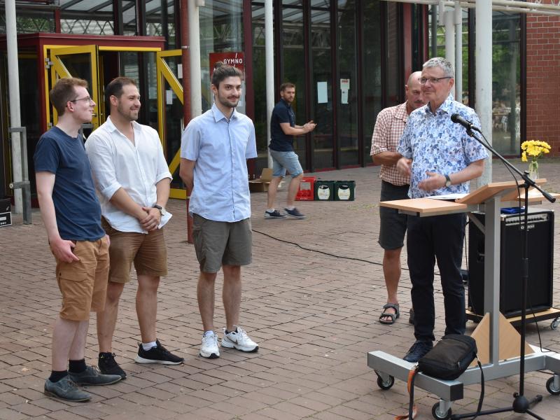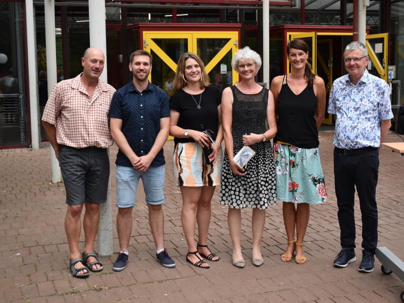 Wir verabschieden uns von den Referendar*innen, die kürzlich ihre zweite Staatsprüfung erfolgreich bestanden haben und nun an eine andere Schule wechseln: Tino Catania, Sabine Feyrer, Kevin Klee, Valentin Glasner, Jonathan Leisch und Marc Schönborn. Wir wünschen ihnen viel Erfolg an der neuen Schule und freuen uns sehr, dass Yves Hellenkamp und Sarah Braun weiterhin am Gymno unterrichten.
