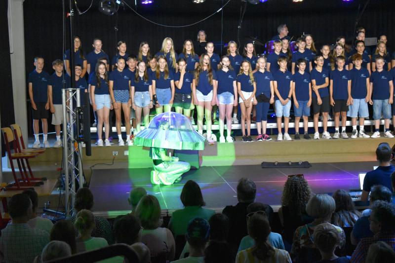 Nach zwei Jahren Gesangsklassen- und Stimmbildungsunterricht war es endlich soweit: Die Gesangsklassen 6a und 6b führten am 13.07.2023 unter der Leitung von Frau Park und Herrn Janson das Musical Spaceman auf.