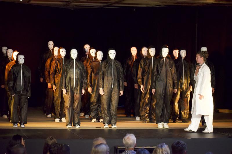 Voller Spielfreude zeigen die 26 Teilnehmer*innen verschiedene Szenen, bewegen sich durch unterschiedliche Rollen und durch die Zeiten.