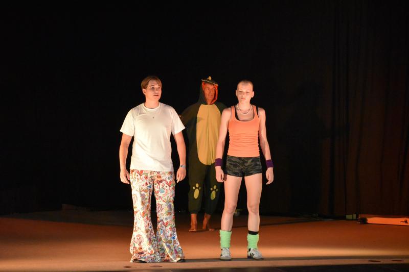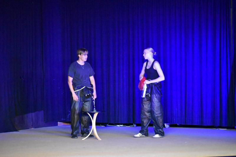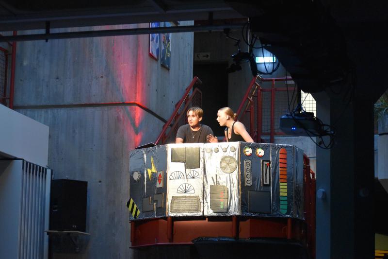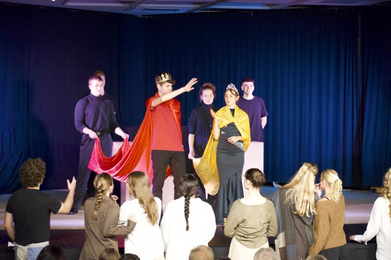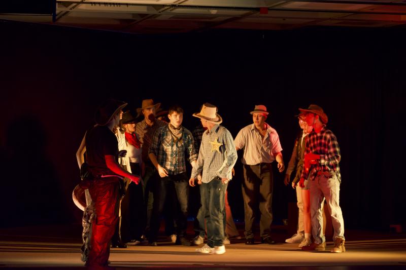 In einer Szene noch Cowboy, in der nächsten König, von Oscar-Preisträgerin und Kameracrew zu Aerobic-Trainerin und Hofgefolge, vom Kellner zum Disco-Tänzer, vom General zum ränkeschmiedenden Kammerdiener; so flexibel agieren die Schüler*innen dabei, alle sind involviert, aktiv, nicht nur darstellerisch, auch hinter der Kulisse oder im Umbau.