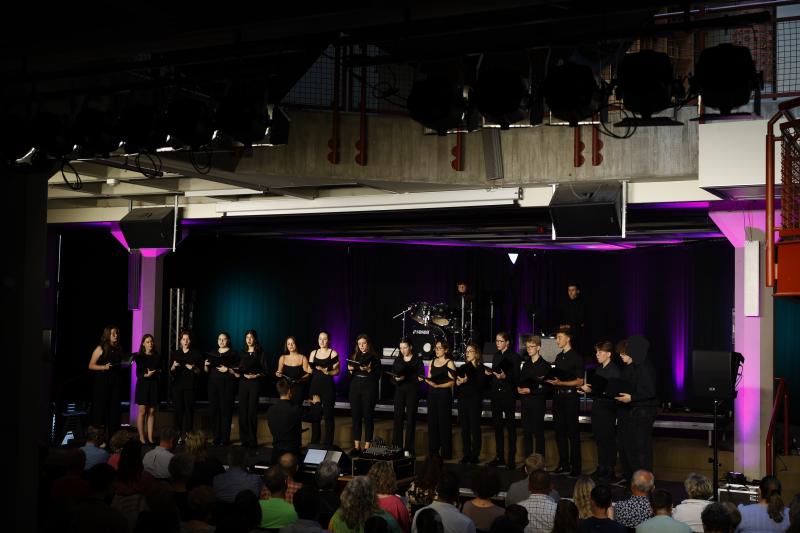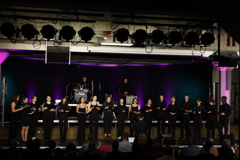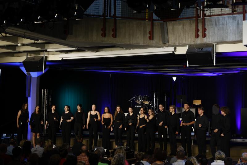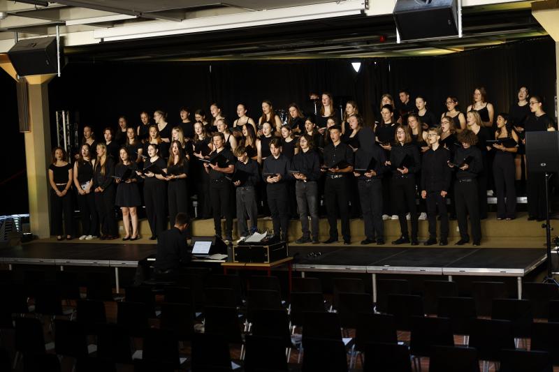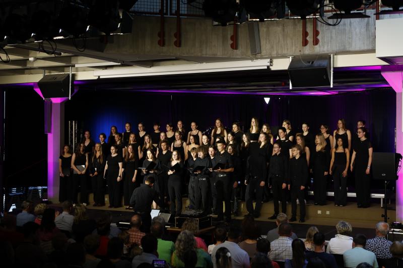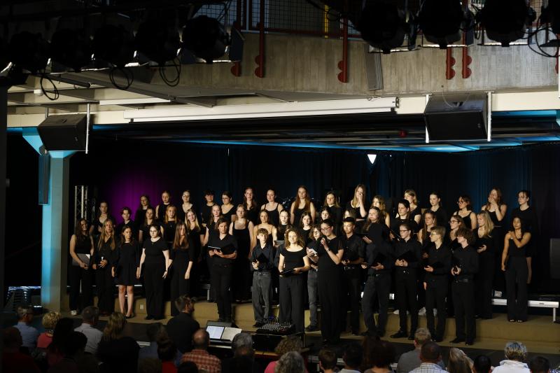 Am vergangenen Freitag, den 07.06.2024, veranstalteten der Oberstufenchor und der Kammerchor unter der Leitung von Jonas Janson im Foyer A ihr diesjähriges Sommerkonzert mit dem Titel „Raum und Zeit“.