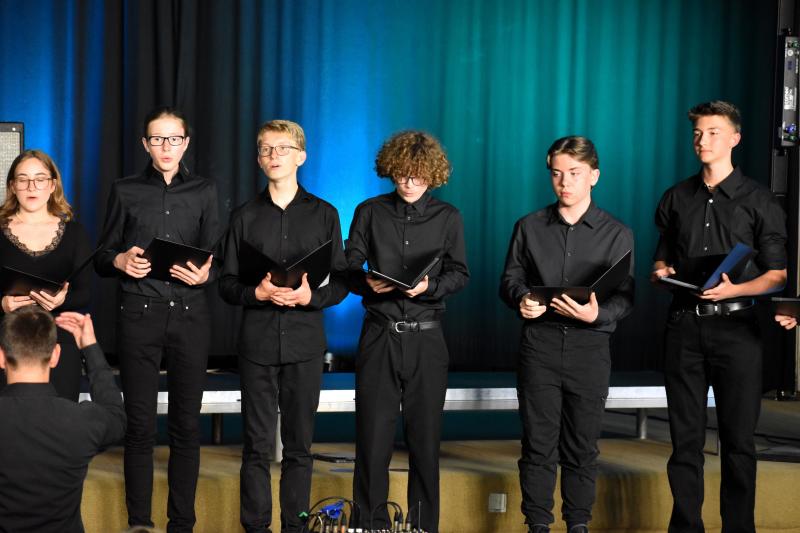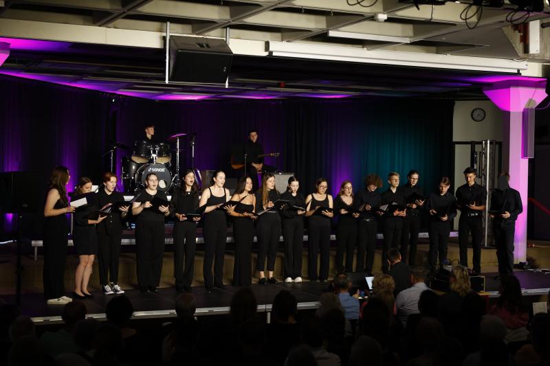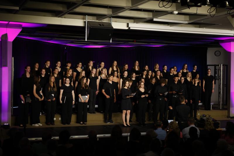 Von Radiocharts der 80er, 90er, und 2000ern über Kirchenmusik des 16.-19. Jahrhunderts bis hin zu bekannten Musicaltiteln überzeugten beide Chören in ihrer hervorragenden Intonation und klaren Artikulation. Während der Oberstufenchor durch die Stimmgewalt von rund 60 Schülerinnen und Schülern und den damit möglichen Klang- und Dynamikkontrasten die Zuhörenden berührte, stand der Kammerchor in seiner kleinen Besetzung von nur 17 ausgewählten Schülerinnen und Schülern und den versiert vorgetragenen, klanglich eindrucksvollen, teilweise sechsstimmigen Werken einem Profichor in nichts nach.
