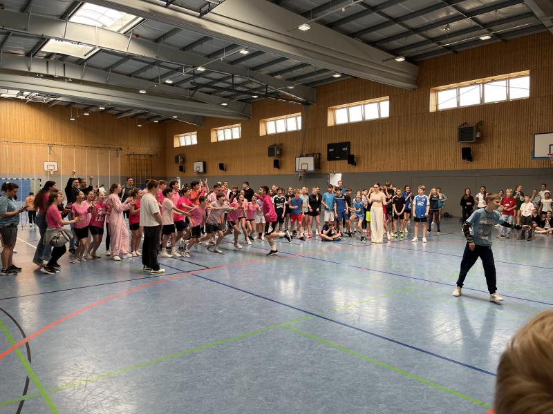 Das diesjährige Handballturnier hier am GYMNO ist Geschichte. In 39 Spielen traten unsere acht Klassen der Jahrgangsstufe 7 gegeneinander an, um einen sportlich und kameradschaftlich spannenden Schultag zu erleben, bei dem am Ende drei Teams als Sieger die Halle verlassen würden.
