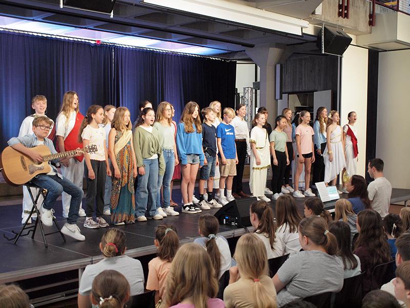 Alle Schülerinnen und Schüler gaben ihr Bestes. Es war eine Freude, dieses gelungene Abschlussprojekt auf der Bühne des GYMNO zu sehen.