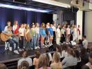 Am Donnerstagabend, den 13.06.2024, fanden sich die Gäste der Gesangsklasse 6b voller Vorfreude auf die kommende Darbietung im Foyer unserer Schule ein, um das Abschlussprojekt der Gesangsklasse 6b anzuschauen.