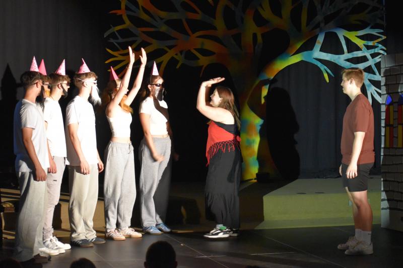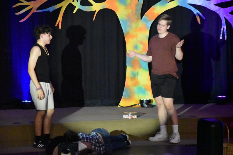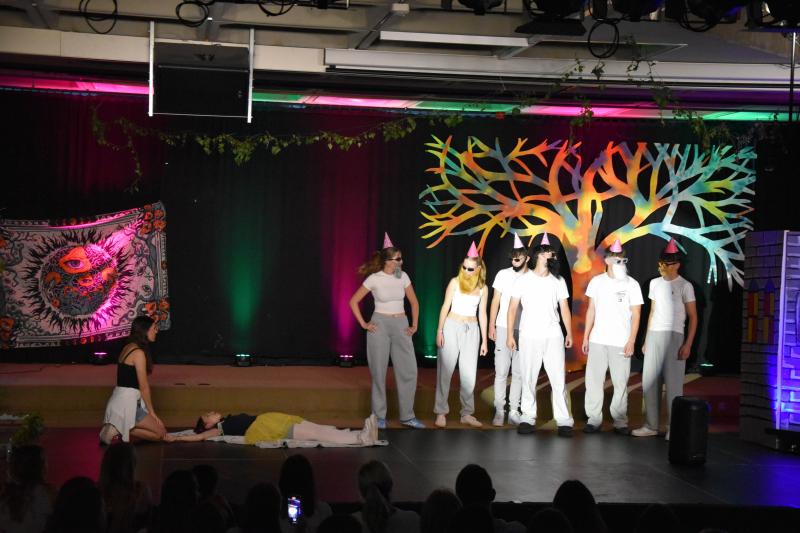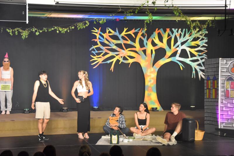 Tatkräftig unterstützt durch die Licht- und Ton-AG unter der Leitung von Frau Weber treffen nun diese beiden verschiedenen Welten aufeinander, und es passiert – vor allem nach dem Genuss von rauschfördernden Pilzen (hier erklärt sich auch die FSK ab 16 Jahren und der Untertitel „Ein Trip ins Märchenland“) – einiges Unvorhergesehenes:
