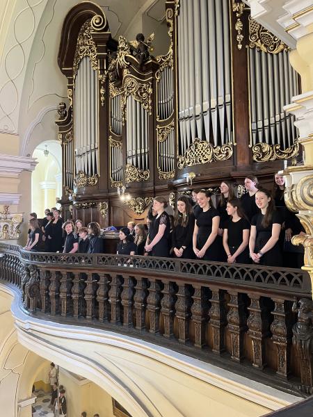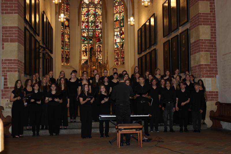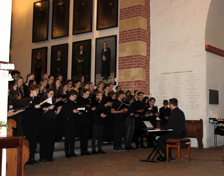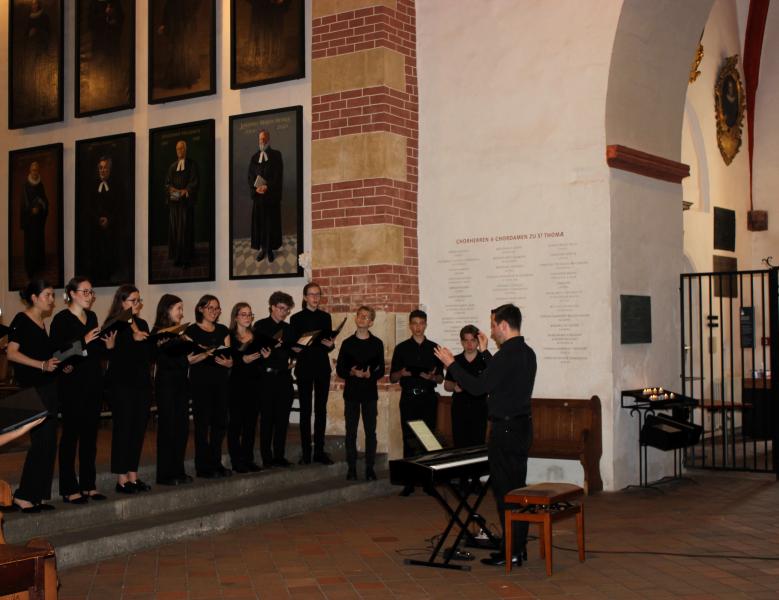 Der erste Stopp hieß Leipzig. Die beiden Chöre hatten die Ehre, in der berühmte Thomaskirche, in der Johann Sebastian Bach wirkte und begraben wurde, ein Mittagskonzert zu singen. Auf Flyern und an den Türen wurden die Chöre bereits angekündigt, sodass sich einige Zuhörerinnen und Zuhörer zusammenfanden, um die beiden Schulchöre zu erleben. Nach einem gelungenen Konzert und einer ausführlichen Erkundungstour in Leipzig ging es dann schließlich weiter nach Glucholazy in Polen.