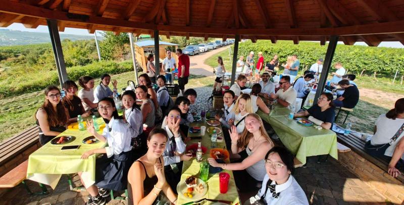 Bei der Willkommensfeier in den Weinbergen von Stadecken-Elsheim kamen Schülerinnen und Schüler, Eltern sowie die betreuenden Lehrkräfte Frau Li, Herr Xu, Herr Rey und Frau Meyer zusammen. Mit viel Engagement und Herzlichkeit hatten die deutschen Gastfamilien ein Fest vorbereitet, das weit mehr als ein Willkommen bot – es sorgte dafür, dass sich unsere Gäste schnell wohlfühlten.