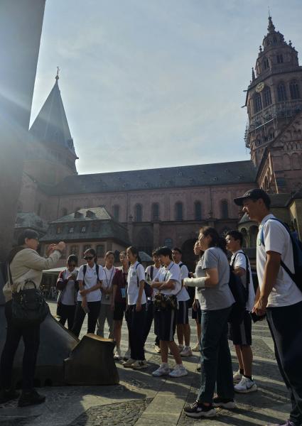 Auch außerhalb des Unterrichts gab es viel zu entdecken. So bot ein gemeinsamer Ausflug zum Niederwalddenkmal Gelegenheit, Natur und Geschichte der Region kennenzulernen. Eine Stadtführung durch die Mainzer Altstadt in chinesischer Sprache ergänzte die vielen neuen Eindrücke. Abschließend sorgte ein fröhlicher Bowling-Abend für viel Spaß.