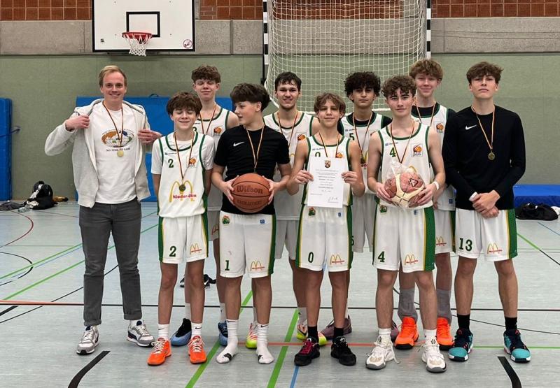 Direkt im Anschluss spielten die Jungs ebenfalls gegen das Theresianum. Nach einer engen Anfangsphase entwickelte sich ein Kopf-an-Kopf-Rennen. Die Jungs zeigten keine Schwächen und überzeugten mit starkem Teamplay und einer guten Offensive. Auf den 43:36 Sieg können sie sehr stolz sein.