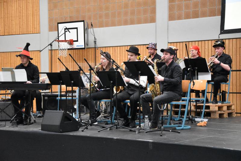Traditionell hat die Jahrgangsstufe 13 mit einer närrischen Polonaise begonnen, bei der sie mit viel Musik ihre Mitschüler aus dem Unterricht abgeholt und sie sicher in die festliche Turnhalle geleitet haben. Zuerst konnten sich die Stufen 5 bis 8 und danach die Stufen 9 bis 13 die vielfältigen Beiträge anschauen: Von Live-Musik der GYMNO-Bigband, bestehend aus Lehrern und Schülern, über Gesangsbeiträge der Schüler, Tanzeinlagen mit eigens erarbeiteten Choreografien und dem Männerballett der Jahrgangsstufe 12 gab es viel zu bestaunen und zu bejubeln. Auch für das leibliche Wohl wurde gesorgt. Die Stufe 12 hat Groß und Klein mit selbstgebackenen Leckereien, Kreppeln und Waffeln versorgt.