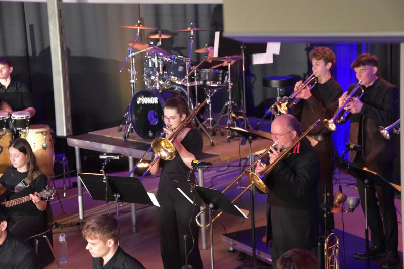 Am Freitag, dem 6. März, erfüllten die Bigband und die Nachwuchsband das Foyer der Schule mit mit einer bunten Mischung aus Pop-, Rock-, Funk-, Swing- und Latin-Titeln und begeisterten ihr Publikum mit ihrem gut zweistündigen Programm.