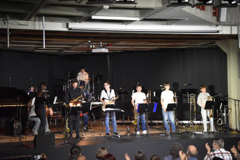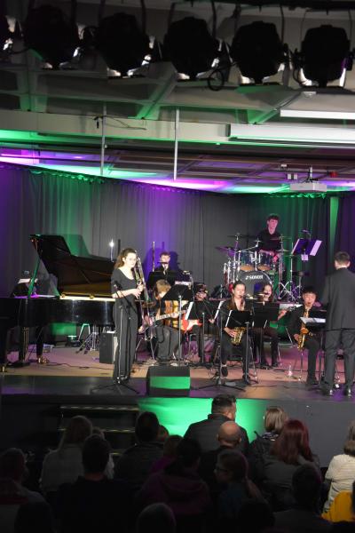 In der Mitte des Abends machten die „Großen“ die Bühne frei für die Nachwuchsband unter der Leitung von Lea Blumberg. Mit Klassikern wie Gimme Some Lovin' oder Seven Nation Army heizten sie dem Publikum ordentlich ein und machten deutlich, dass man sich um die Zukunft der Bigband keine Sorgen machen muss.