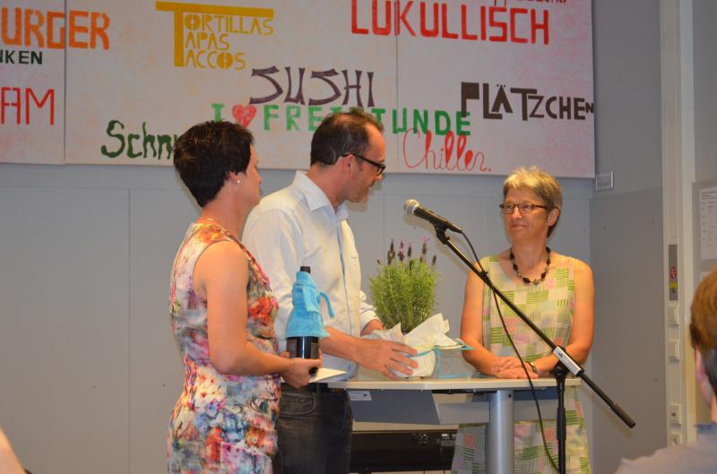 Birgit Stecker verlässt die Schule nach 30 Jahren. Sie unterrichtete Sport und Erdkunde. Durch ihre lebendige, fröhliche und pragmatische Art hat sie die Schule an unterschiedlichen Stellen geprägt. So hat sie als Personalratsvorsitzende für ein gutes Klima im Kollegenverband gesorgt und führte verpflichtend den Fair-Trade-Kaffee an der Schule ein. Dem Sport gab sie durch ihre langjährige Safer-Skating-AG einen besonderen Akzent und sie organisierte bis zuletzt die Bundesjugendspiele. Nebenher zeichnet Frau Stecker sich durch ihr gesellschaftliches Engagement als Gemeinderatsmitglied in ihrer Heimatgemeinde sowie Schöffin aus.