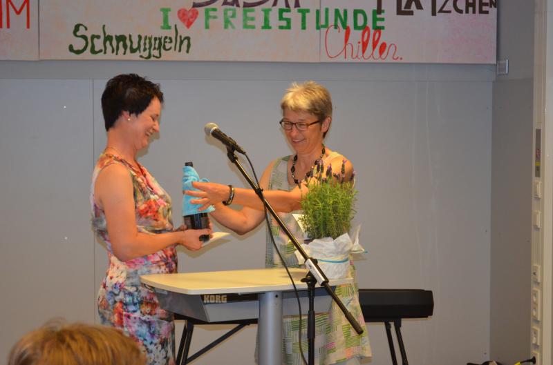 (Foto: Schulleiterin Christel Frey verabschiedet  Renate Birkmeyer)