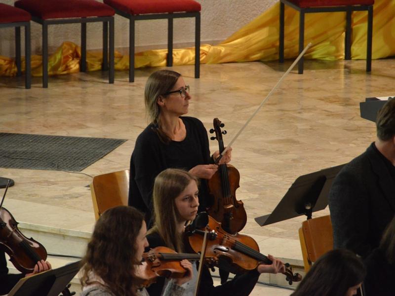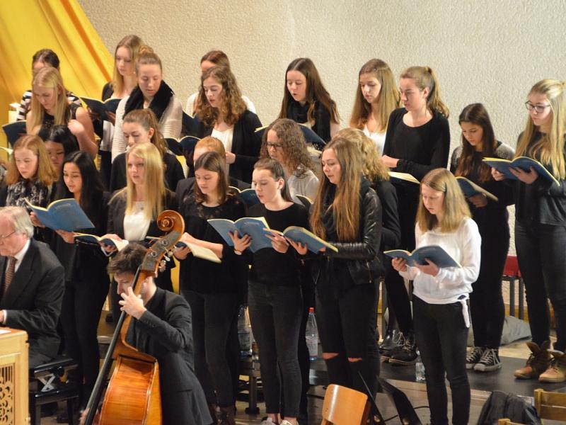 Musikalisches Highlight des Konzerts war das „Gloria“ von Antonio Vivaldi unter Leitung von Roland Bolender, welches durch die zwei erstklassigen Solistinnen Hannah Pfützner (Sopran) und Janina Kreisel (Alt) , dem Oberstufenchor, dem 8er Chor sowie dem Kammerorchester aufgeführt wurde und das Publikum begeisterte.