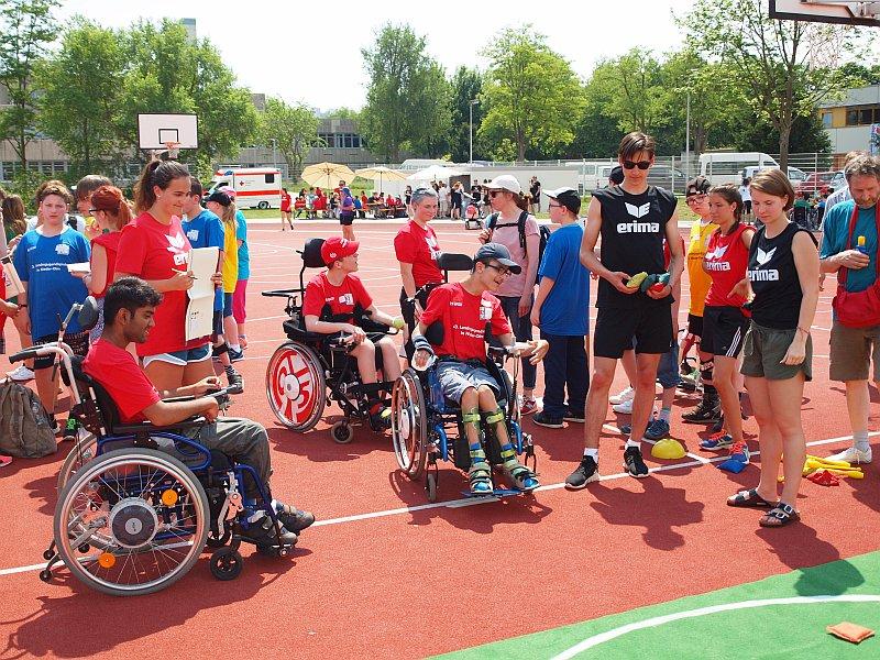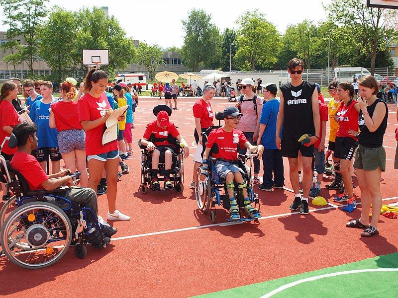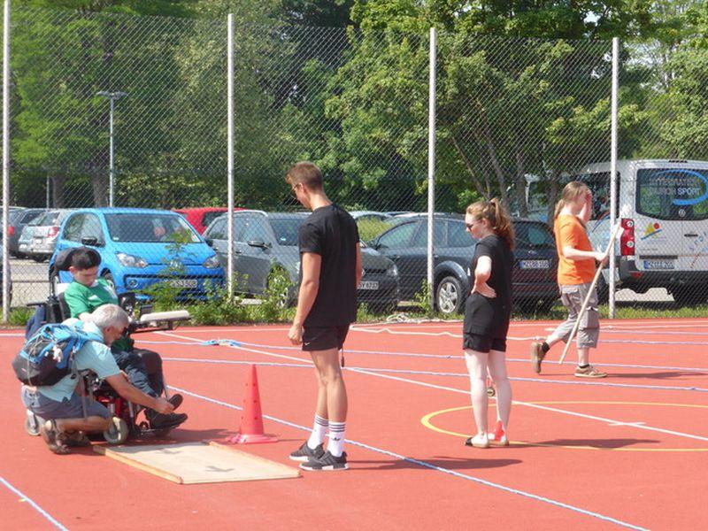 Ab 8.00 Uhr unterstützten die Schülerinnen und Schüler der Leistungskurse Sport aus den Jahrgangsstufen 11 und 12 das Sportfest. Aufbau und Betreuung von 20 unterschiedlichen Stationen gehörten ebenso zum Programm wie Improvisation bei unvorhersehbaren Ereignissen. Die ganze Leistungsbreite behinderter Athleten - darunter vielleicht künftige Paralympicsteilnehmer - konnte hier hautnah erfahren werden, traten die Teilnehmer des Sportfestes doch in 39 unterschiedlichen Behinderungsklassen an.