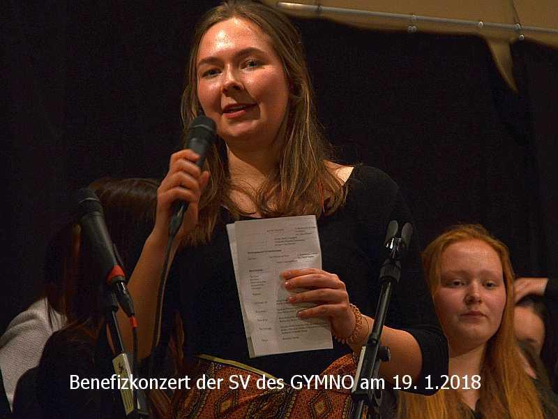 Zuvor bedankte sich das Publikum bei Leah Klussmann, der Schülersprecherin des GYMNO, für die Organisation des Konzerts mit einem tobendem Applaus. „Diese junge Frau hat ungemein viel Verantwortung für das Konzert übernommen und hat diese Aufgabe hervorragend gemeistert,“ so die Schulleiterin Frau Frey.
