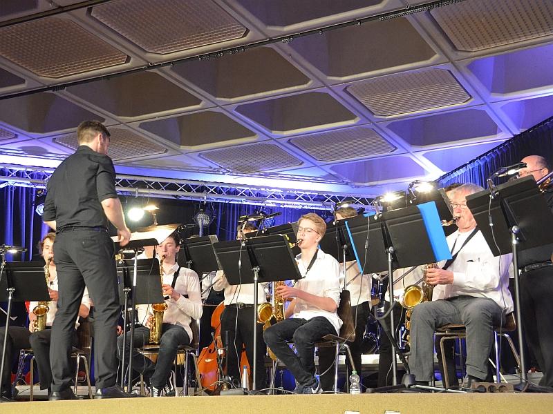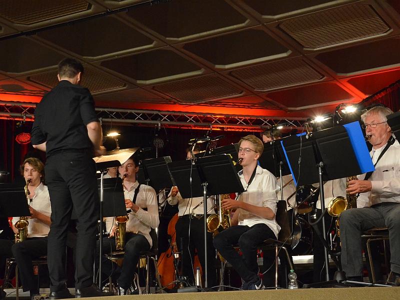 Eine „leistungsstarke Darbietung“ hatte Marcel Rudszeck für das Jahreskonzert der Gymno Big-Band versprochen. Nicht zu wenig, denn die Rhythmen wurden im Verlauf des Abends immer grooviger und der Sound immer voller. Vor allem die virtuosen Soloeinlagen von Henry Schappert (Saxofon) und Johann Prinz (Trompete) sowie die starke Stimme der neuen Sängerin Charlotte Koch schafften glanzvolle Höhepunkte und zeigten, wie vielseitig die aktuelle Big Band ist. Ihr Repertoire reicht von Rock über Funk und Swing bis hin zu Balladen. Neben Marcel Rudszeck übernahmen auch Wolfgang Rieger und der Musik-Allround-Schüler Moritz Holdenried das Dirigat.