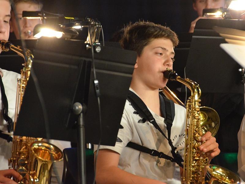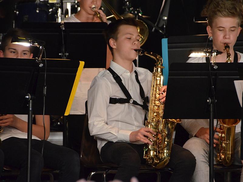Ein Garant für die hohe Qualität sind die vielen langjährigen Band-Mitglieder aus der Jahrgangstufe 12 sowie vier Abiturienten, die sich auch an diesem Abend von der Band verabschiedeten.